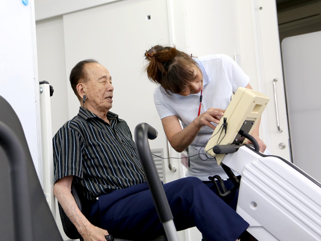 マシンを使ったエクササイズです。お一人おひとりの体力や身体能力にあわせて進めていきます。 スリング(つりロープ)でストレッチや筋肉増強を行う運動療法の他に、5種類のマシーントレーニングや、マシーンを使用しないことによる運動器の機能向上を目指しています。 また、早稲田イーライフへ通所し運動(外出・交流)することにより運動現象による悪循環を好循環へ転換させ、QOL(生活の質)が向上します。